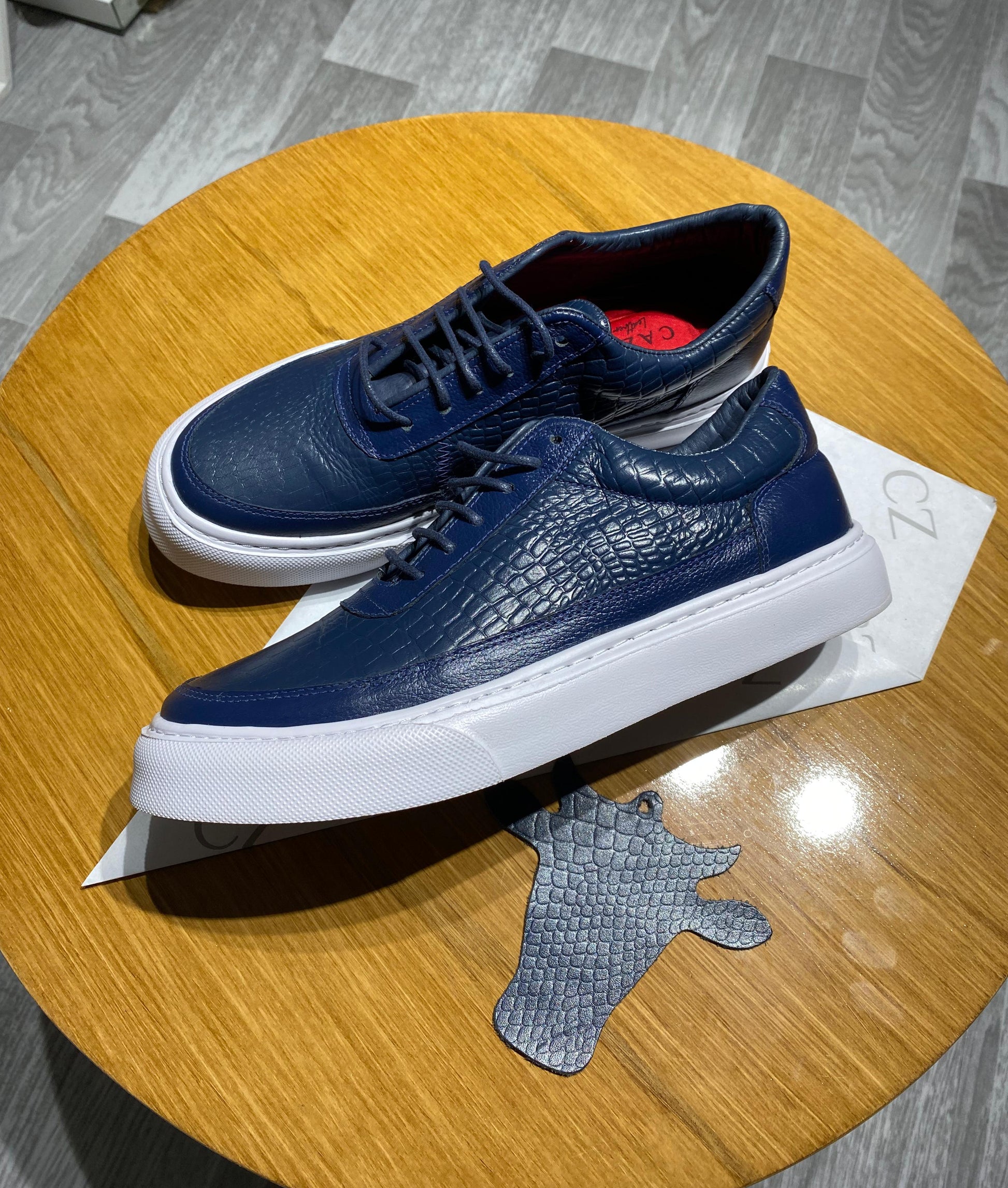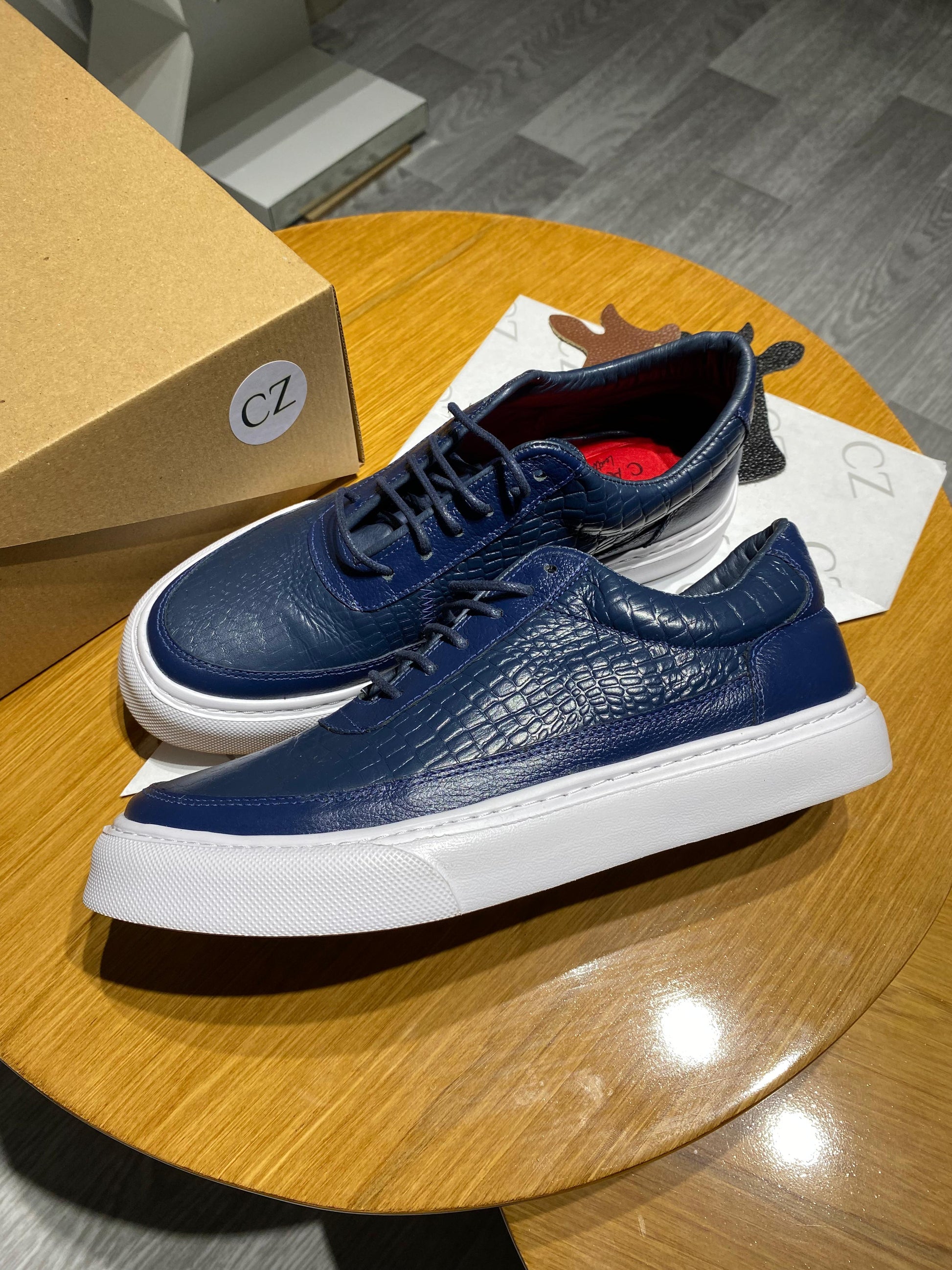El Cobra CZ Azul Oscuro es el equilibrio perfecto entre elegancia y estilo urbano. Su tono profundo y sobrio resalta el trabajo artesanal del cuero legítimo, mientras la textura tipo reptil añade carácter y sofisticación.