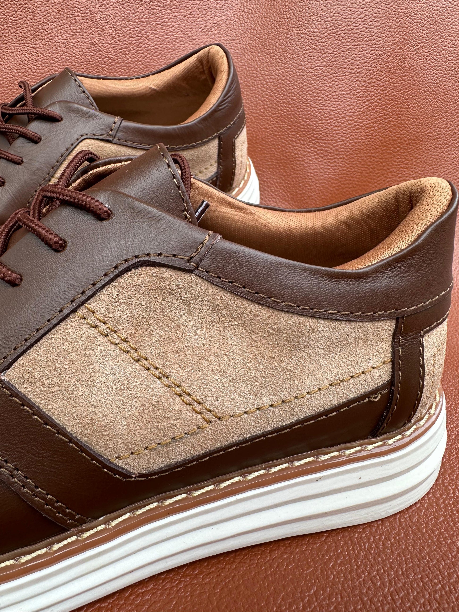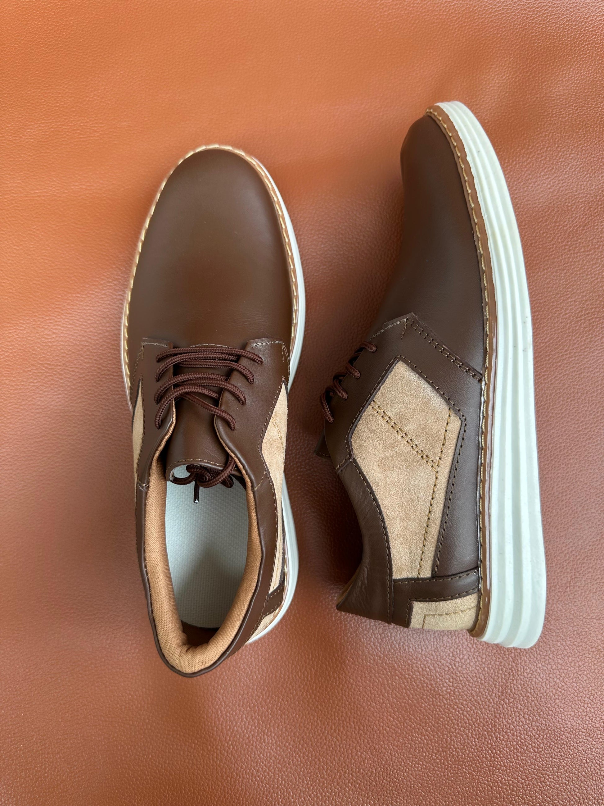 Este diseño de la línea empresarial Cazzal fusiona el cuero café con tonos claros en gamuza, logrando un zapato que transmite confianza, dinamismo y estilo.